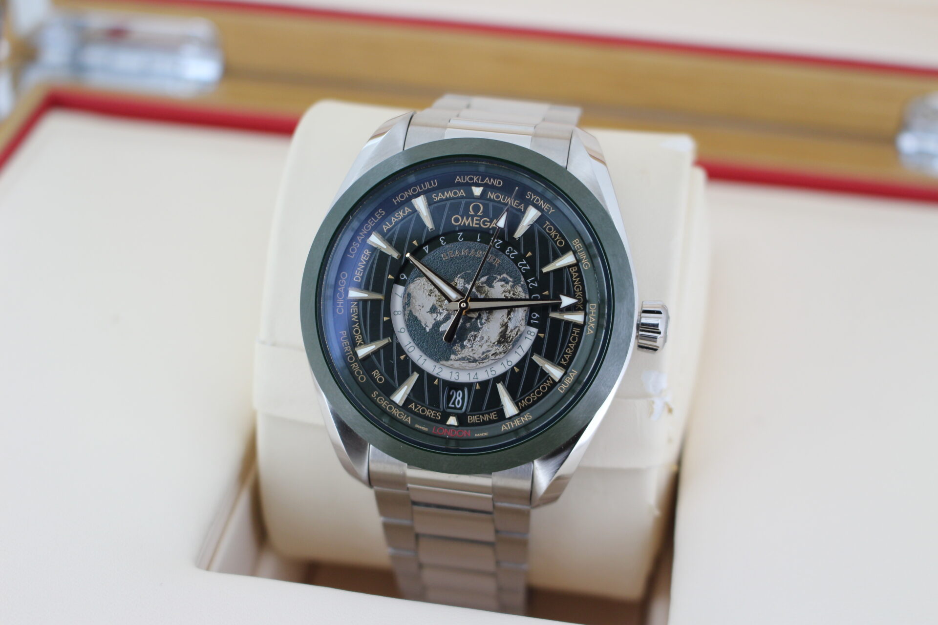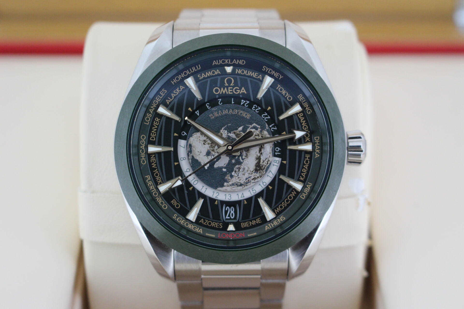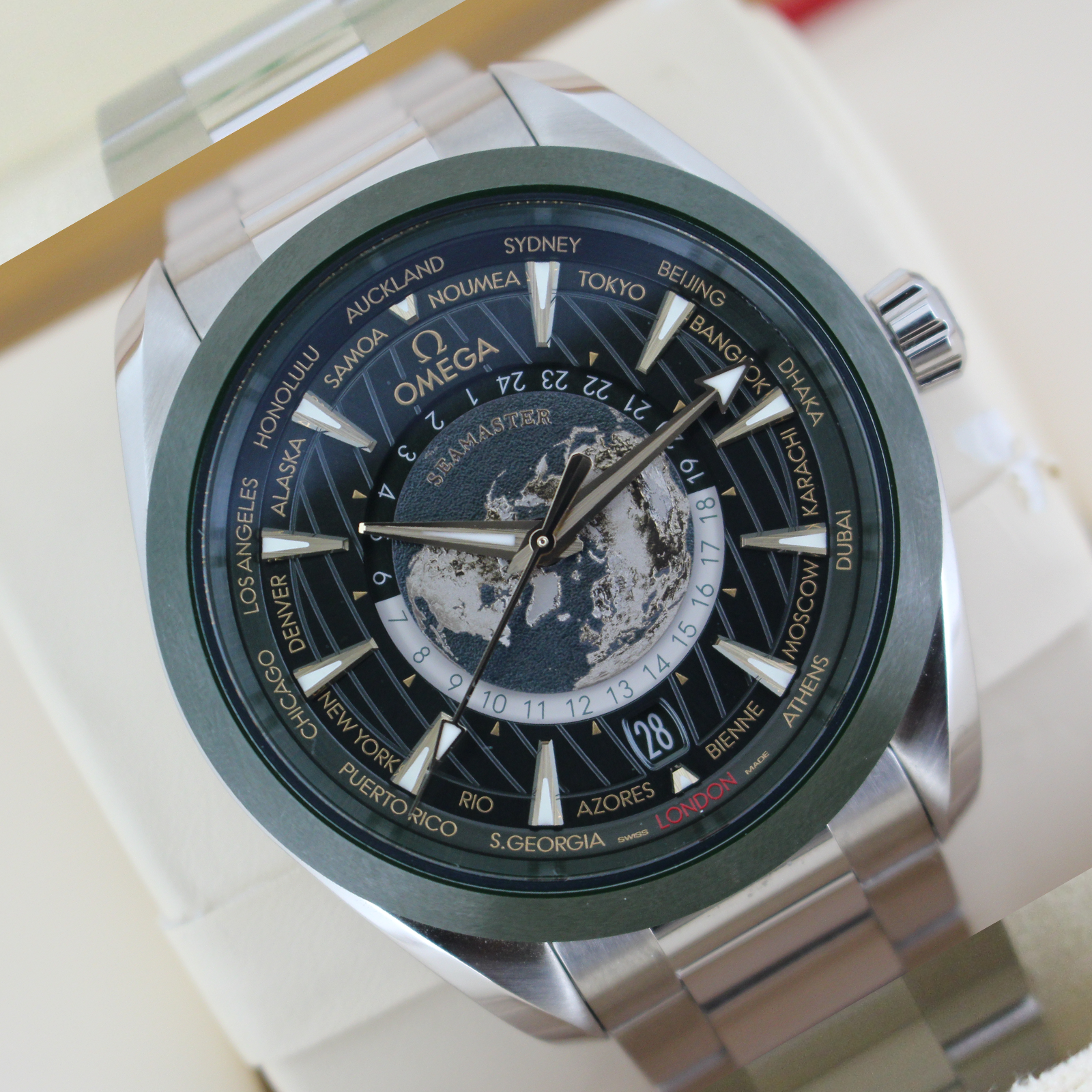 We are pleased to offer this special Omega World Timer. Coming with the premium green dial and titanium additions.