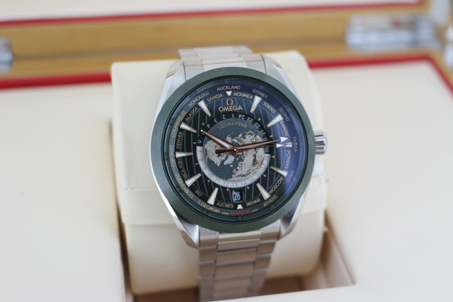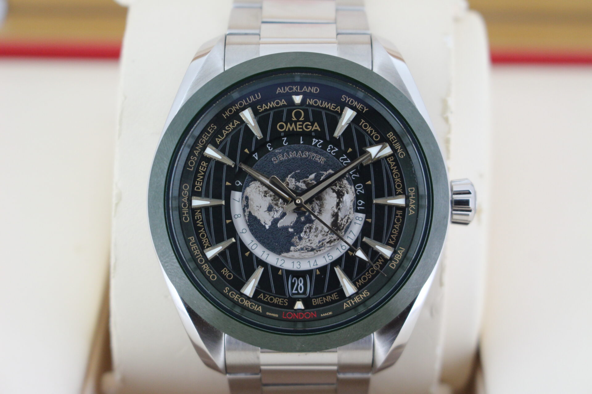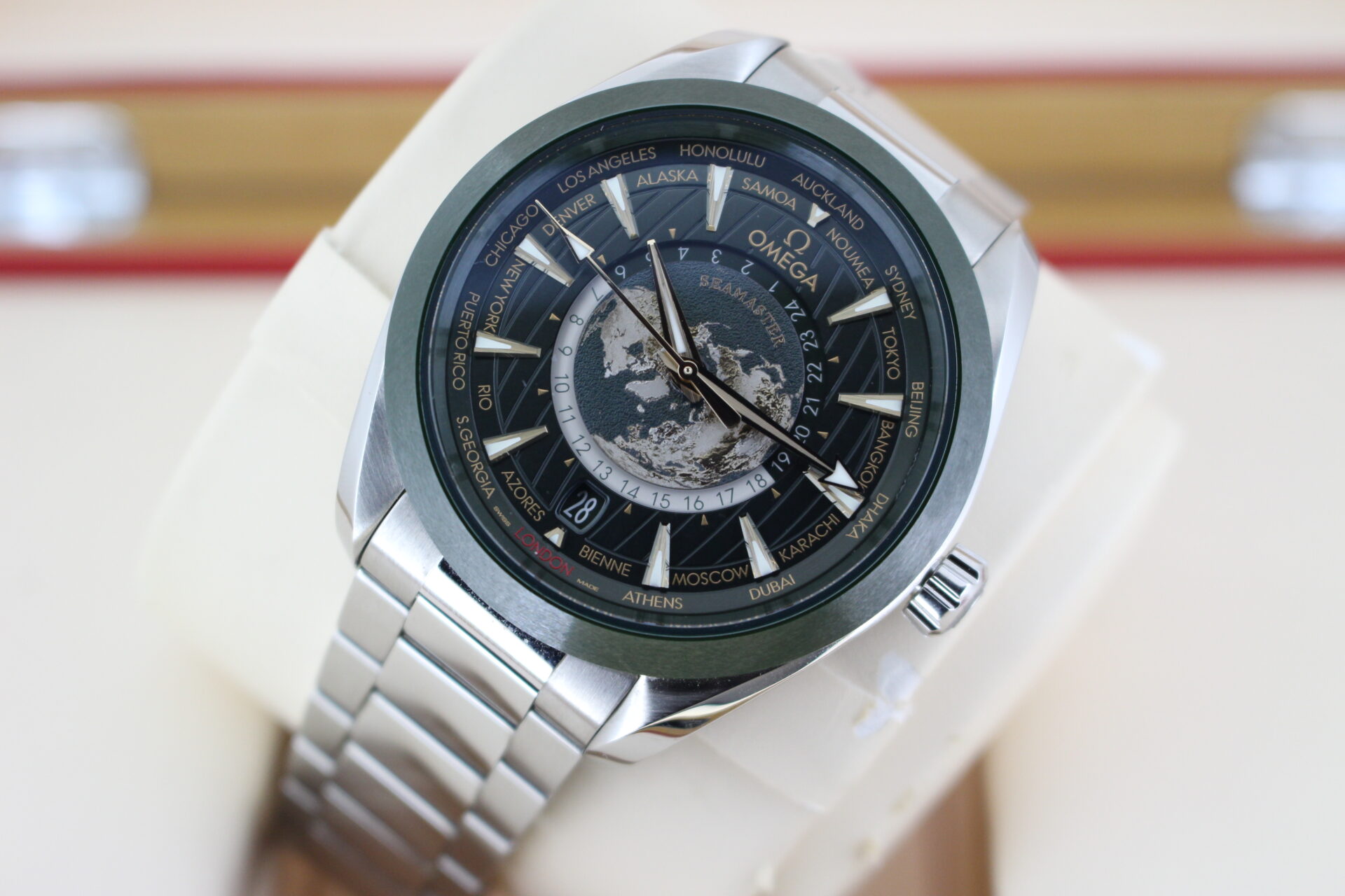 We are pleased to offer this special Omega World Timer. Coming with the premium green dial and titanium additions.