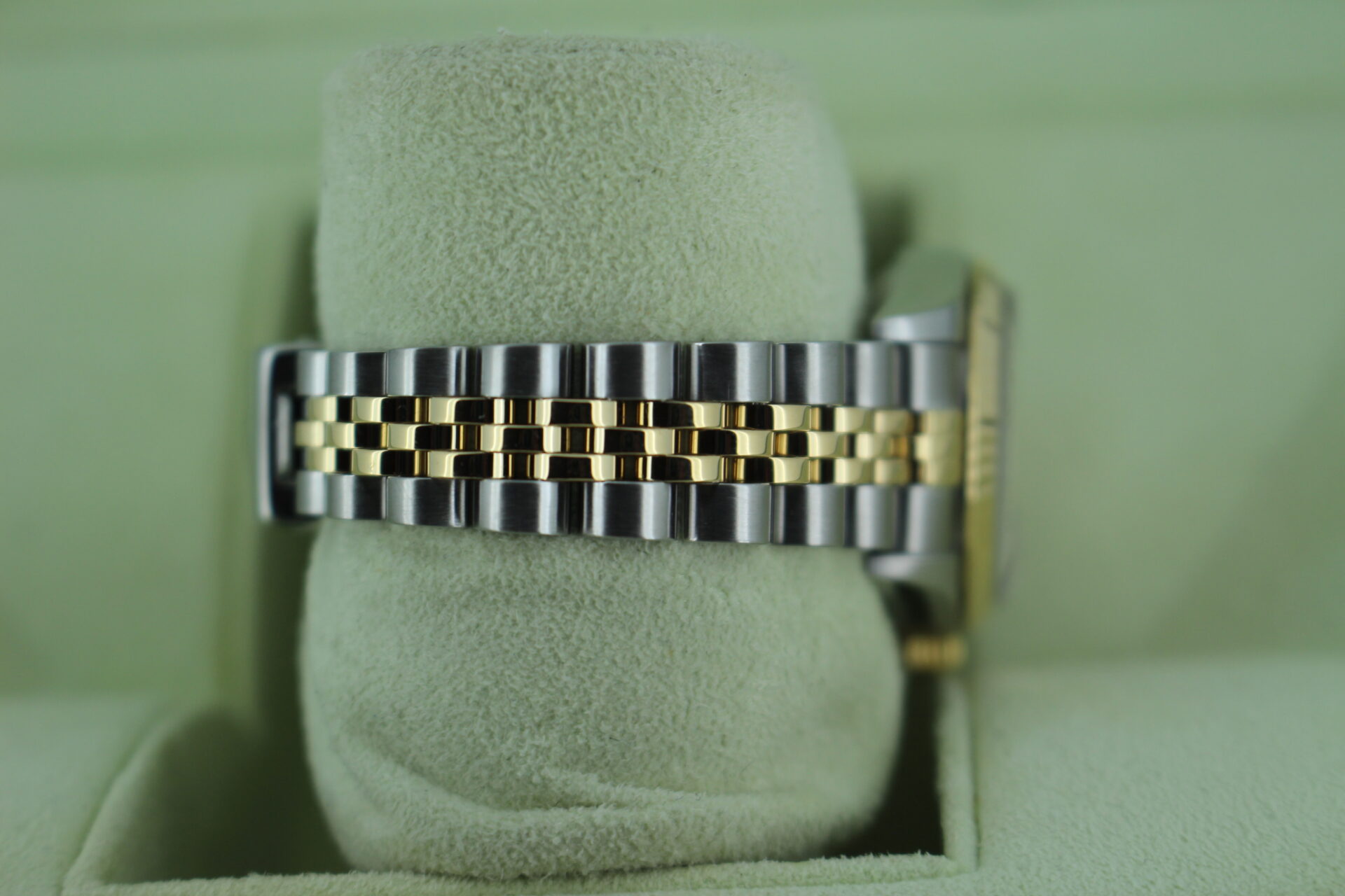 This particular watch comes with both inner and outer boxes, red swing tag and Rolex warranty paper stamped December 1998.