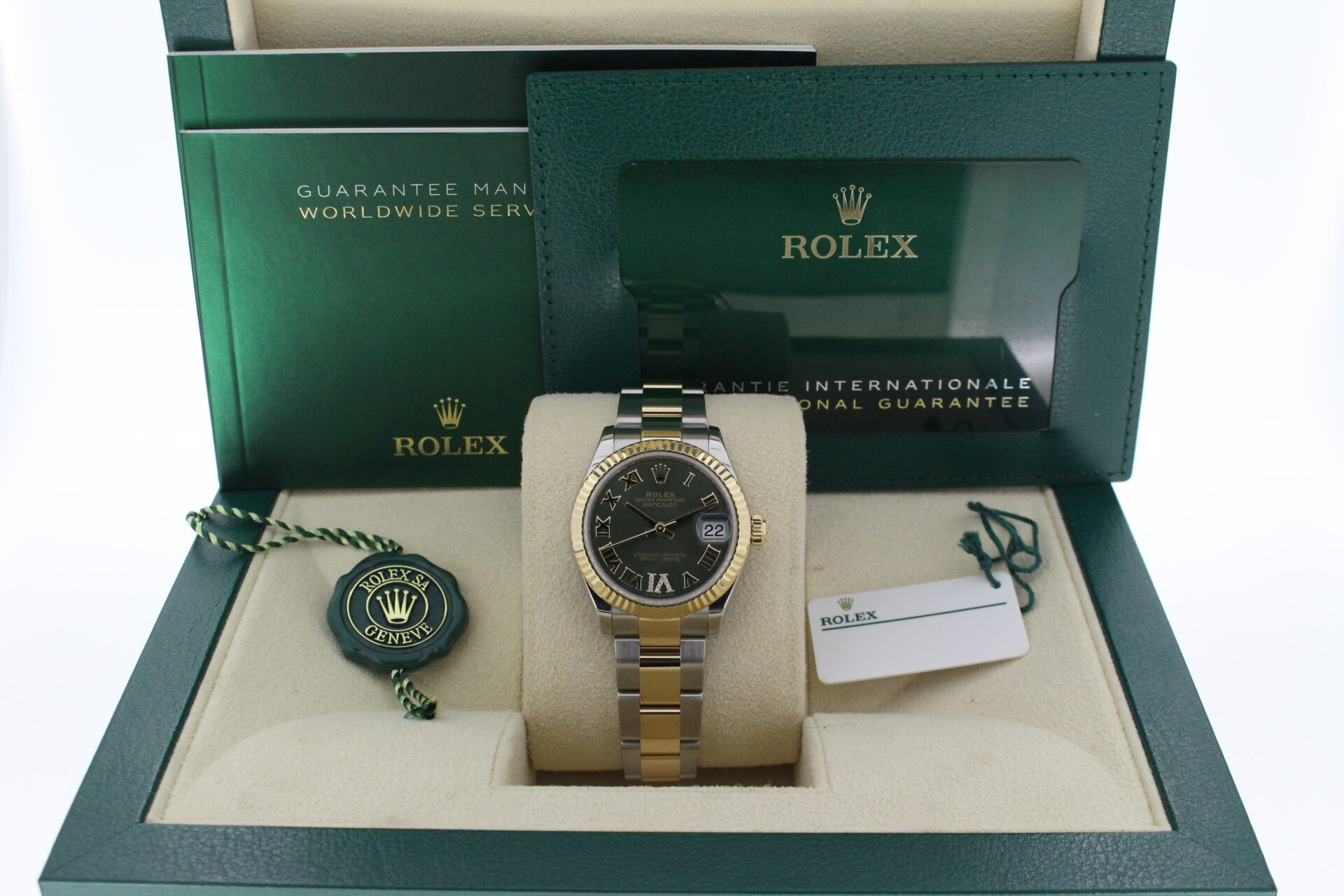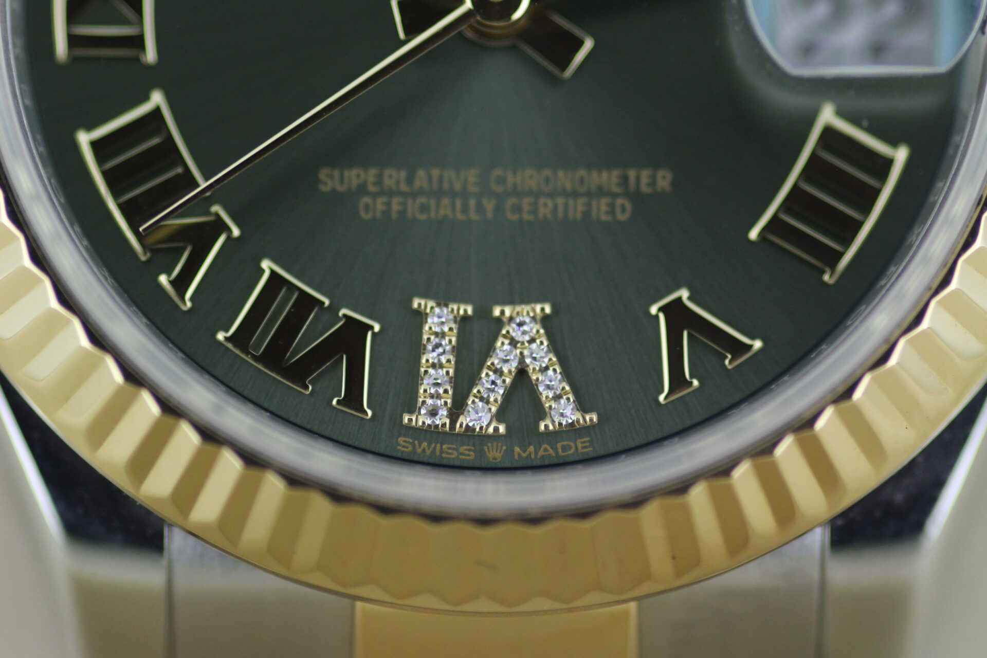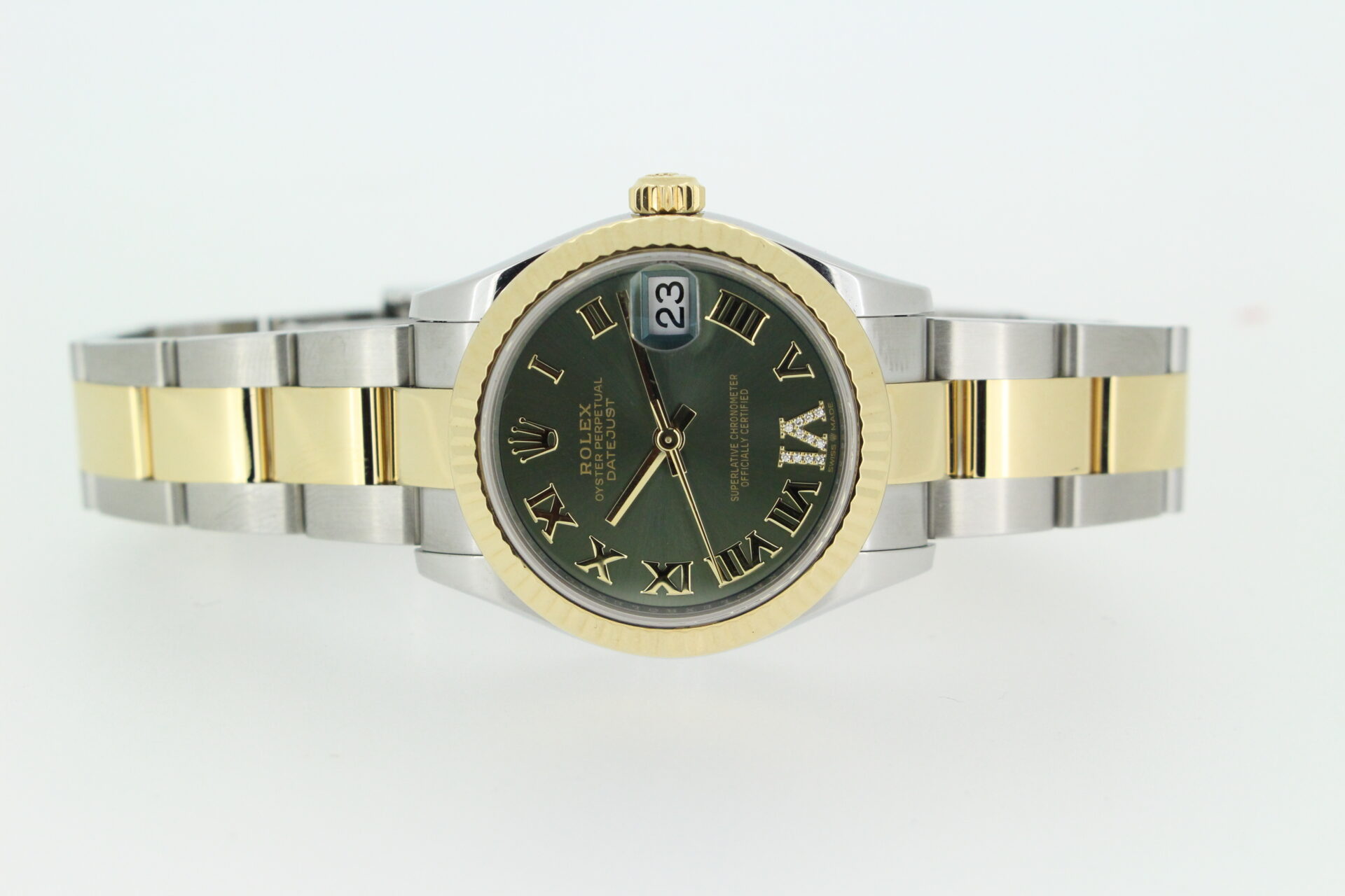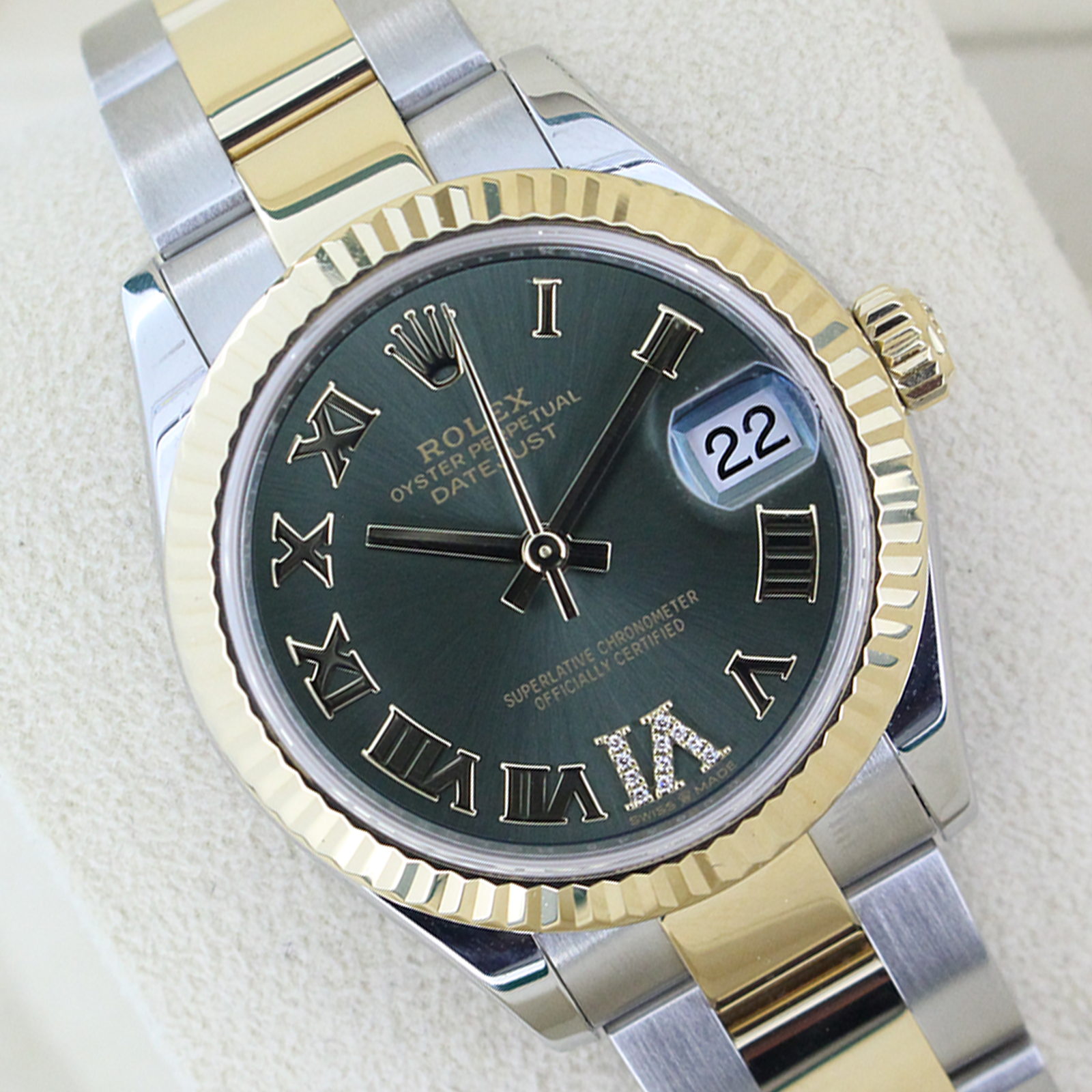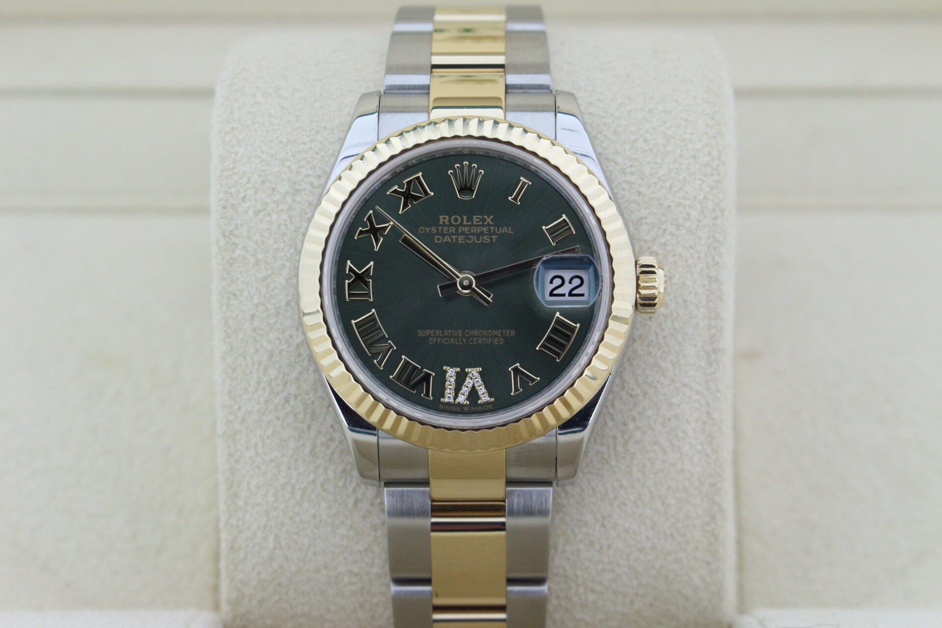 We are pleased to offer this beautiful Rolex Datejust 31. Fitted with the extremely desirable olive green diamond set dial on an oyster bracelet.