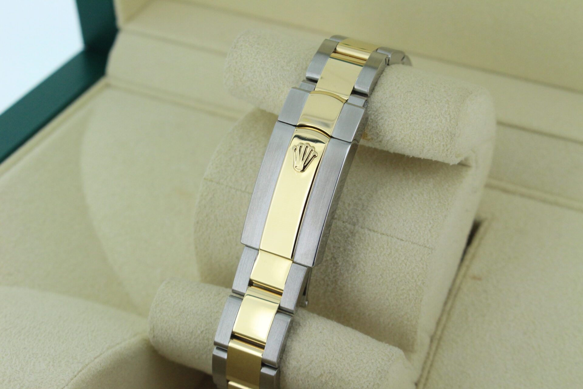 This particular watch comes as a full UK set from new including both inner and outer boxes, outer sleeve, both swing tag, booklets, original UK purchase receipt and Rolex warranty card stamped April 2024.