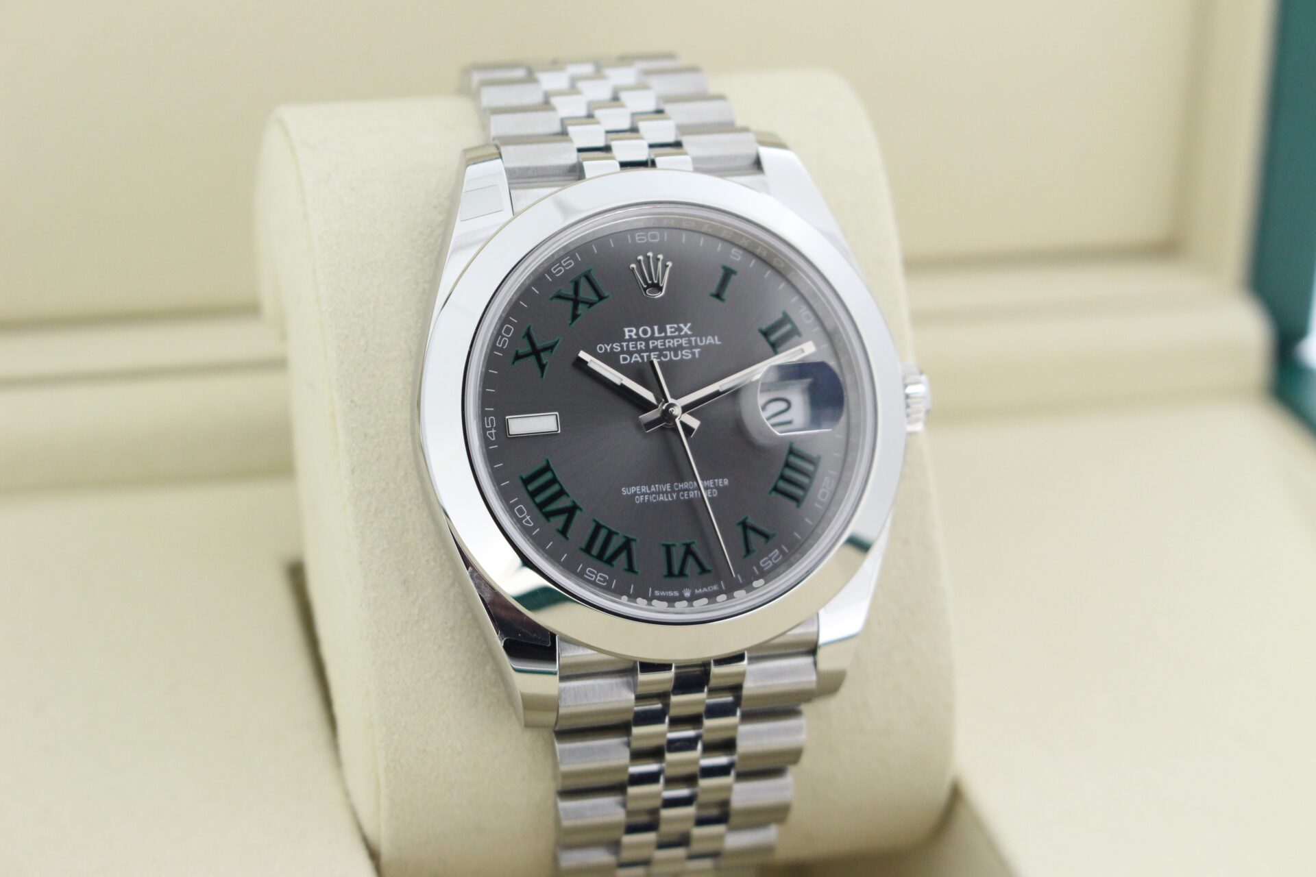 Rolex Datejust 41 Wimbledon 126300 turned in it's box