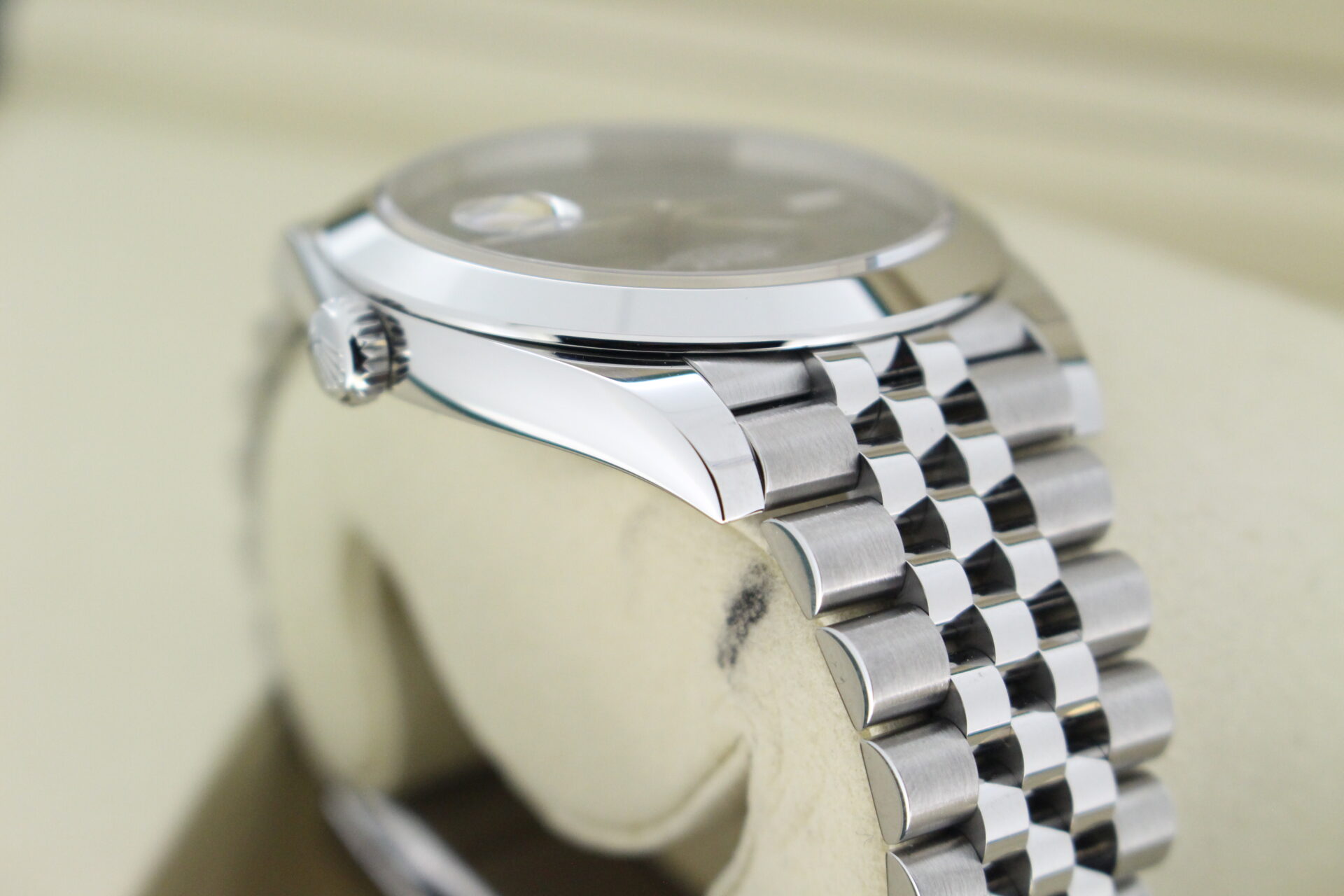 With a jubilee bracelet this watch has a real sporty yet classic look. The Jubilee and smooth bezel are a great combination.