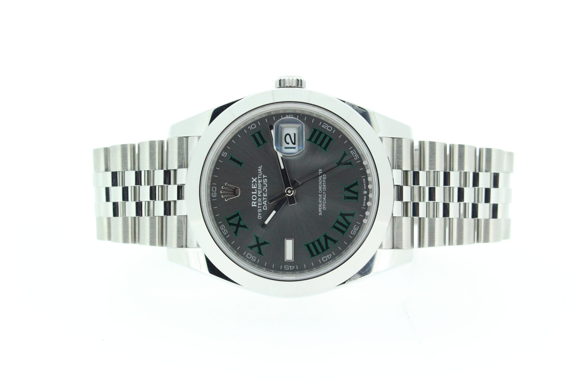 A stunning Rolex Datejust 41mm. Fitted with the popular Wimbledon dial on a jubilee bracelet with a smooth bezel.