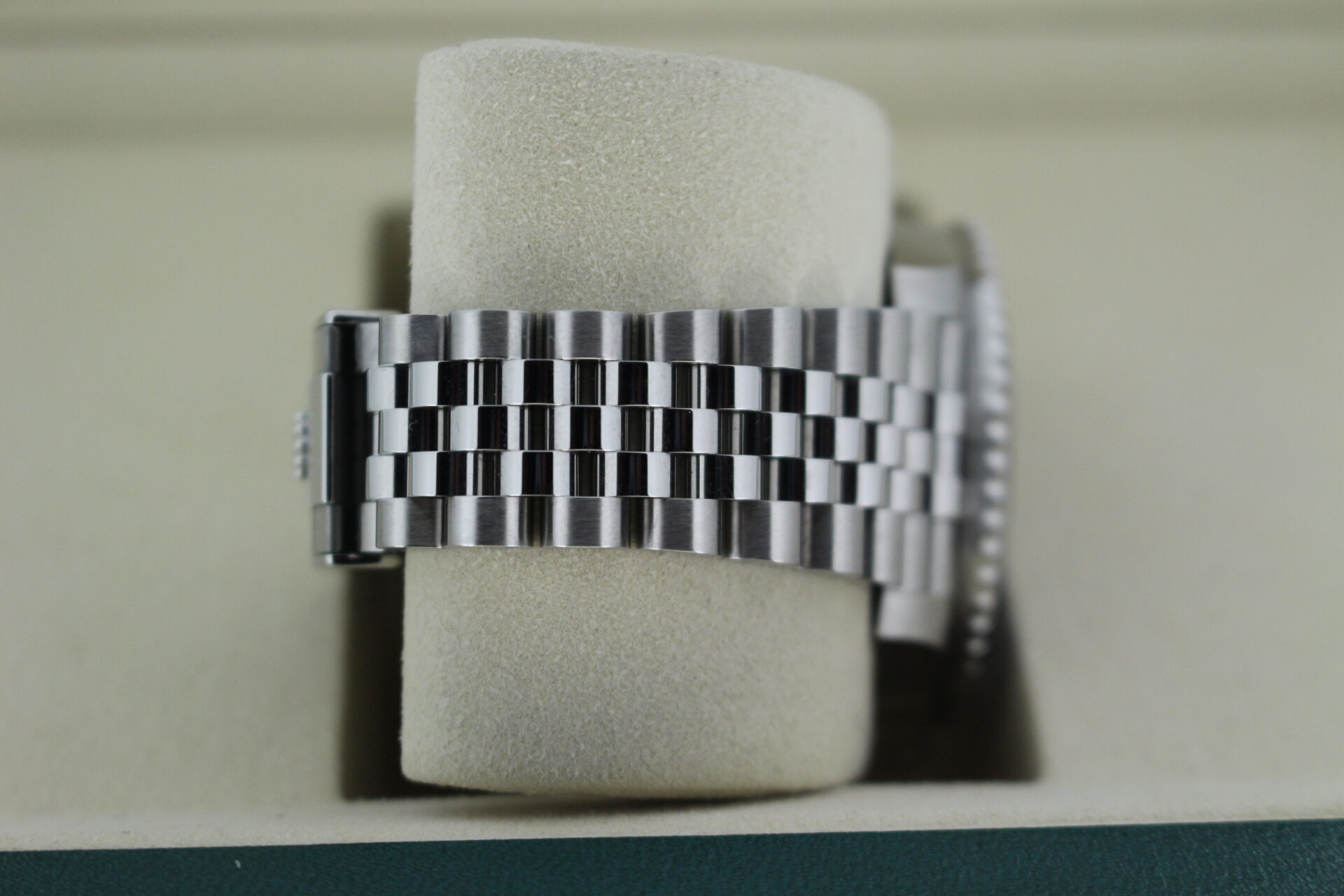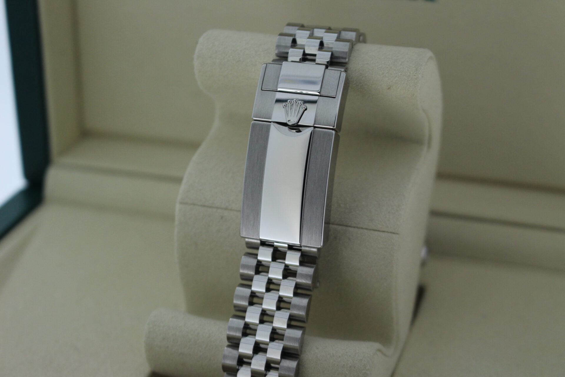 This particular watch comes as a full set from new including both new style inner and outer eco boxes, outer sleeve, both swing tags, booklets and Rolex warranty card stamped October 2025.