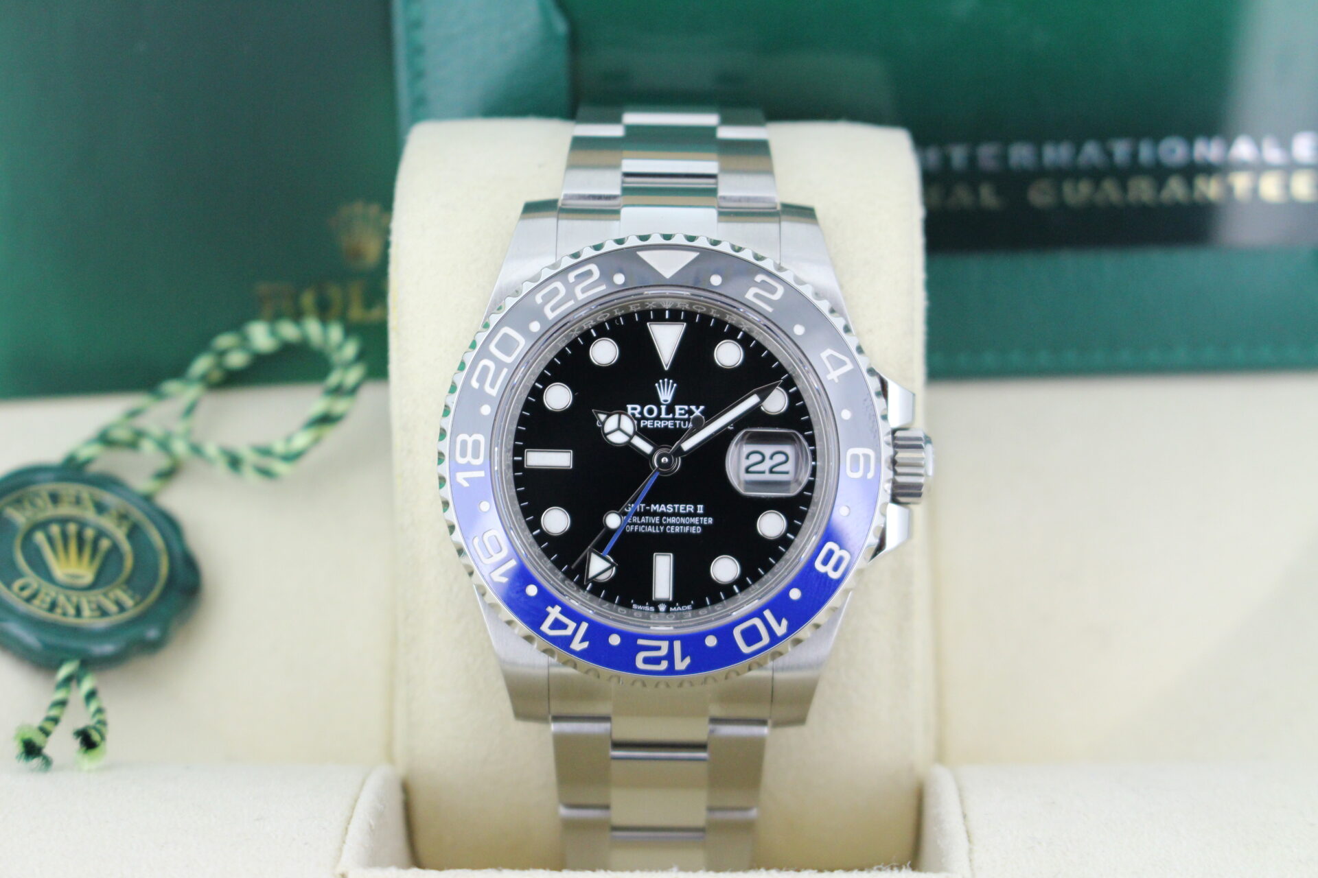 With its dual time zone functionality, the GMT Master II Batman allows travellers and professionals to keep track of time across different regions effortlessly. The scratch-resistant sapphire crystal protects the watch face, while the Cyclops lens over the date enhances legibility. The Oyster bracelet, featuring an Oysterlock clasp, provides a secure and comfortable fit, making it ideal for daily wear or any adventure you embark on.