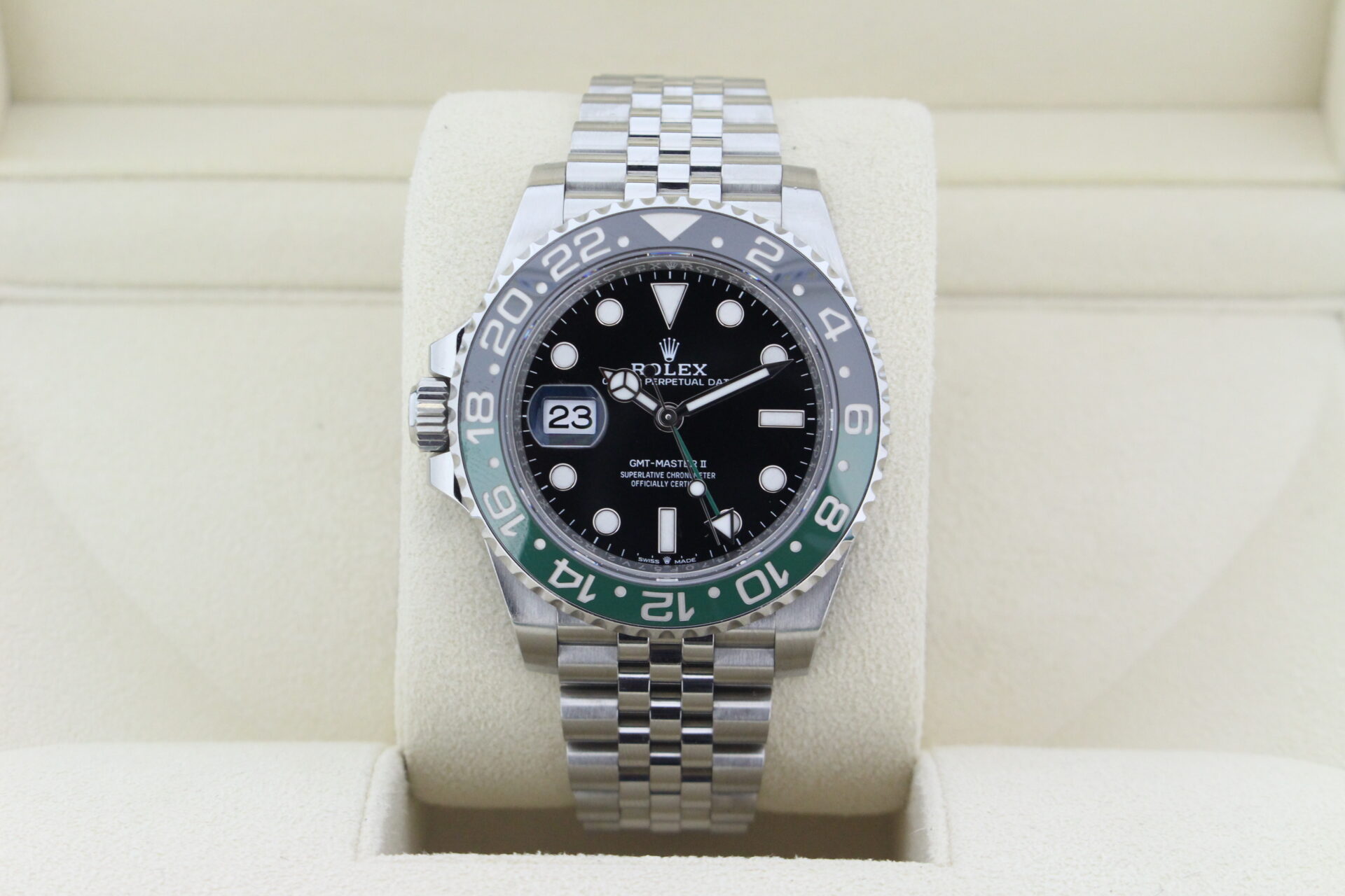 This Rolex GMT-Master II is not just a watch; it’s a statement of sophistication, precision, and versatility. Whether you’re navigating different time zones or attending a formal event, the Rolex sprite ensures you do so with style and reliability.