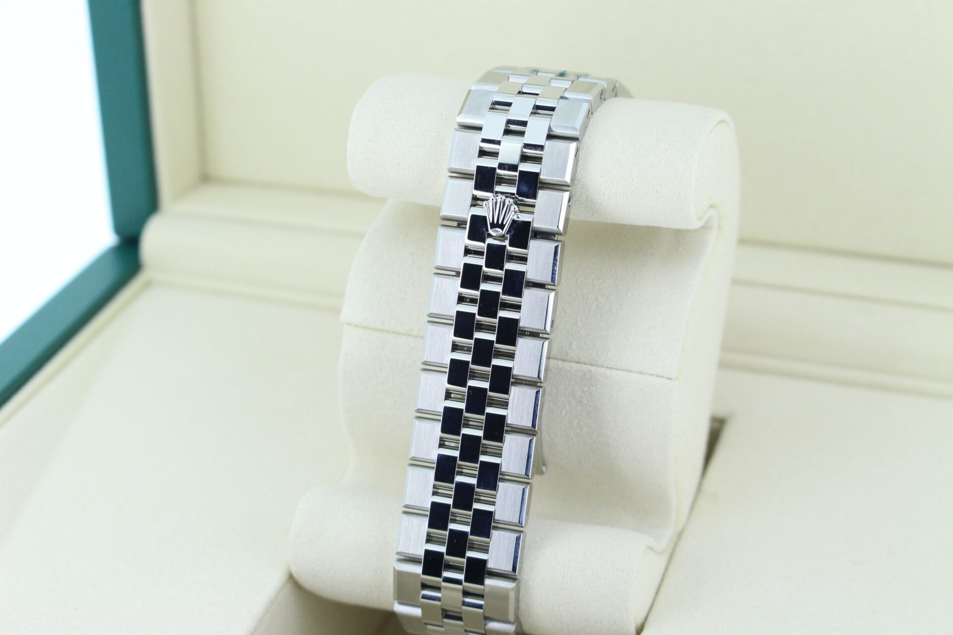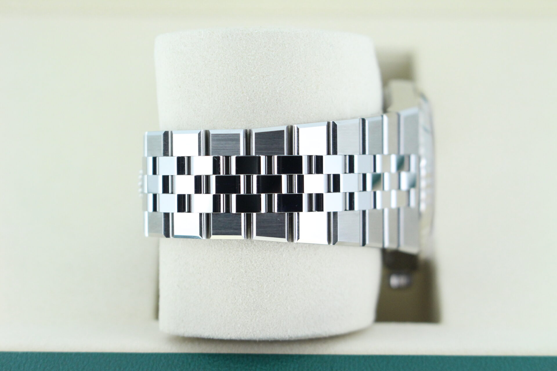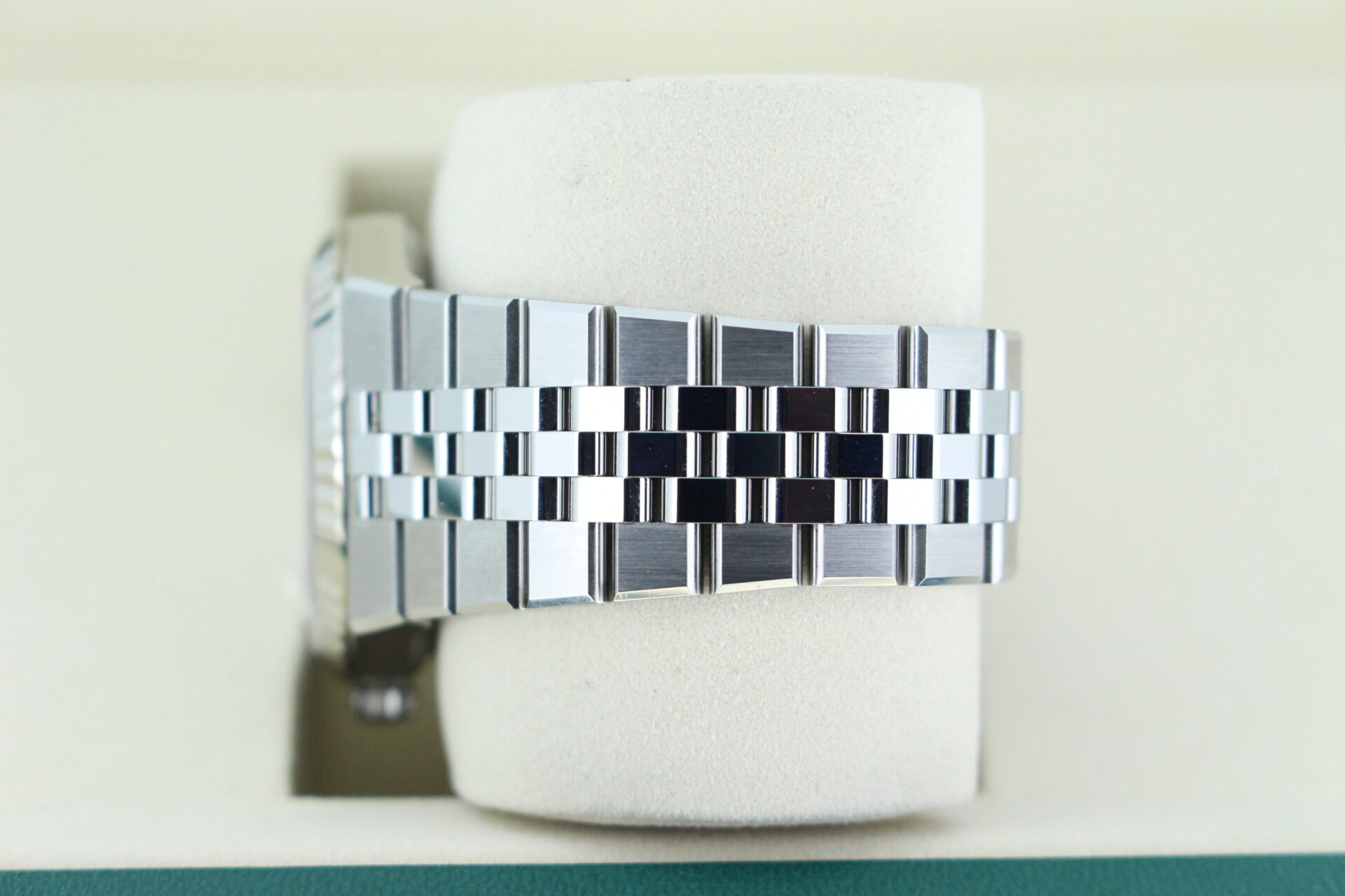 The Land-Dweller is fitted with the newly designed Flat Jubilee bracelet — a refined evolution of Rolex’s classic five-link construction. The bracelet combines brushed outer links with polished centre links, creating a subtle interplay of textures that catches the light without being overstated.