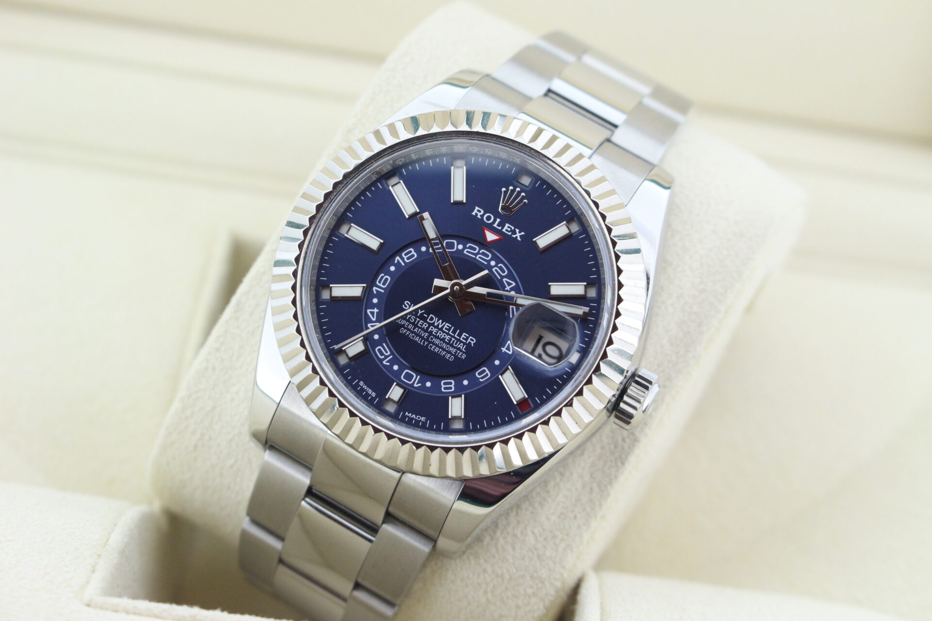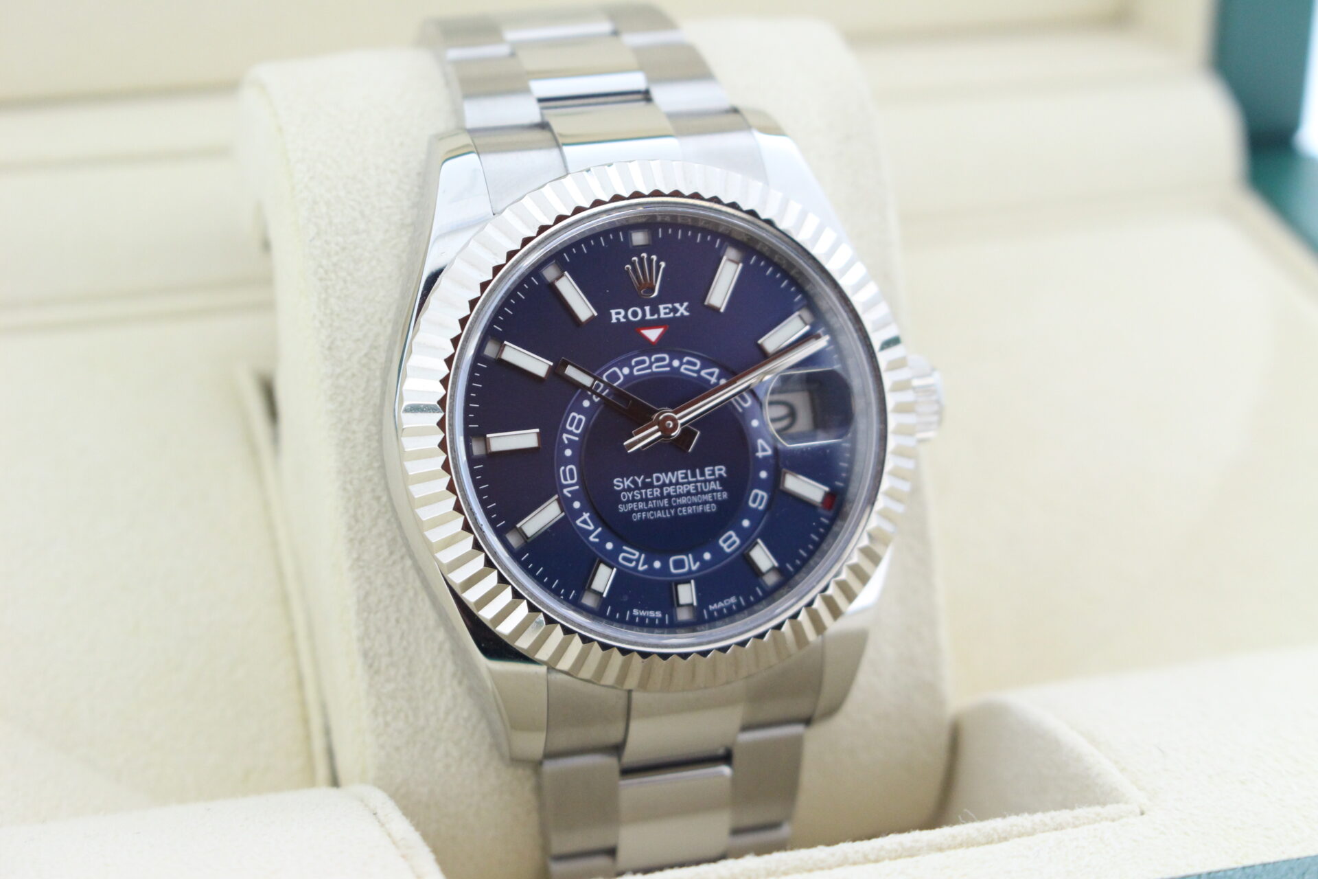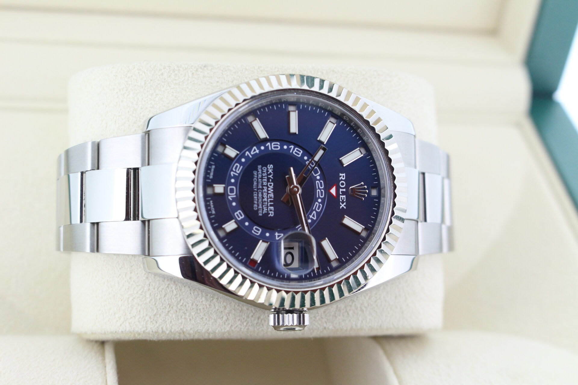 Many collectors consider the blue dial sky-dweller to be Rolex’s most attractive looking watch, we tend to agree!
