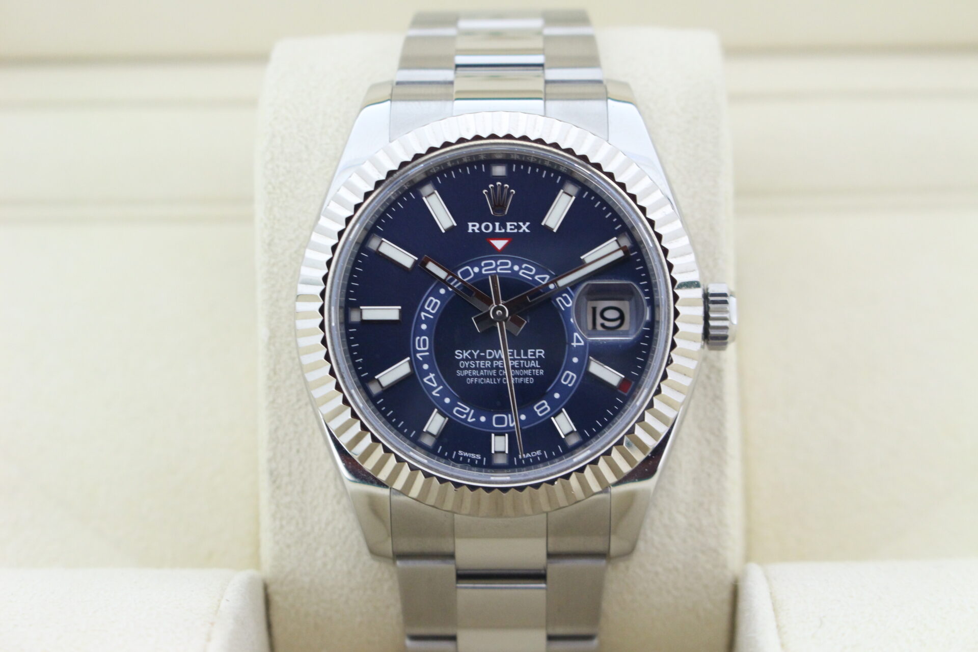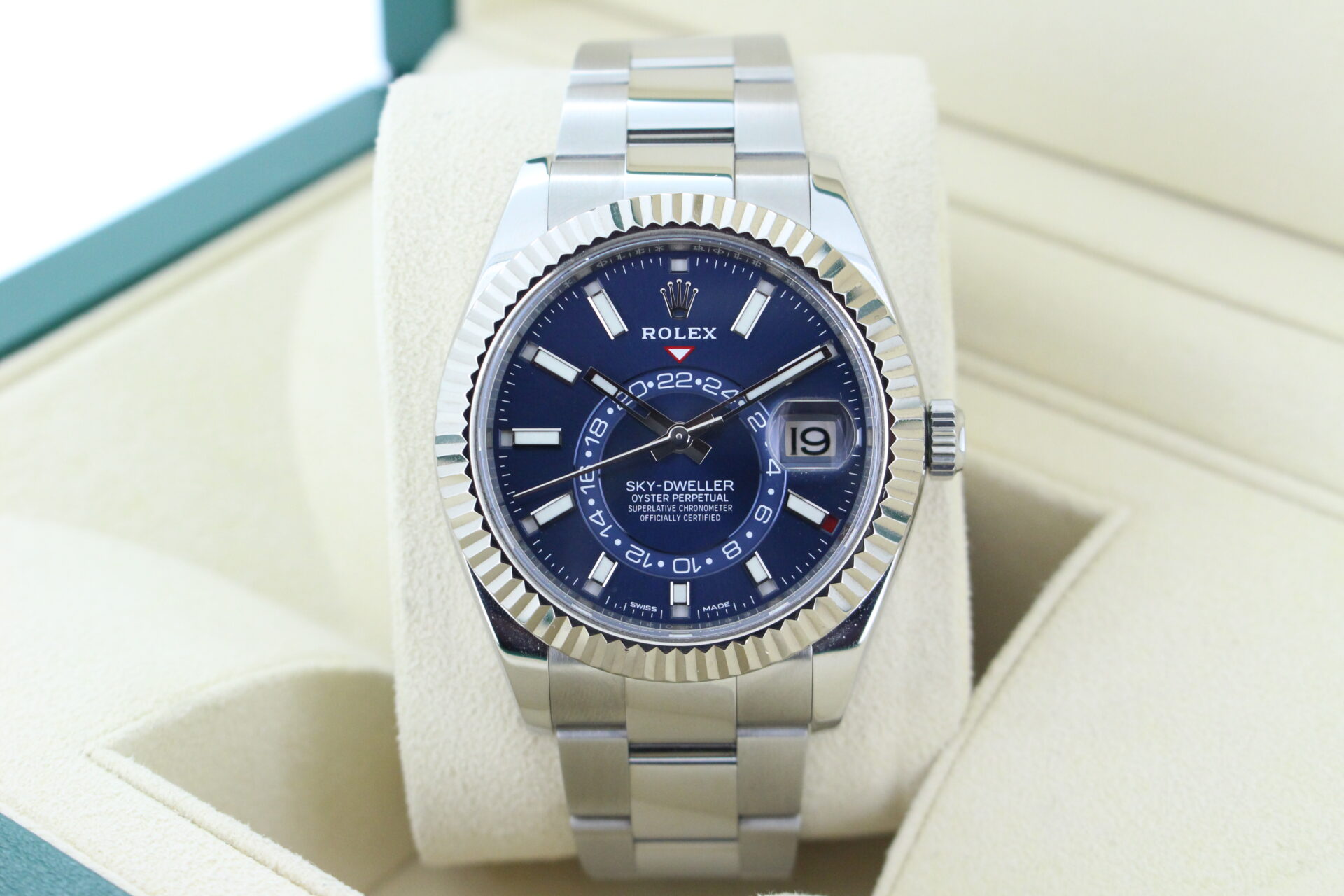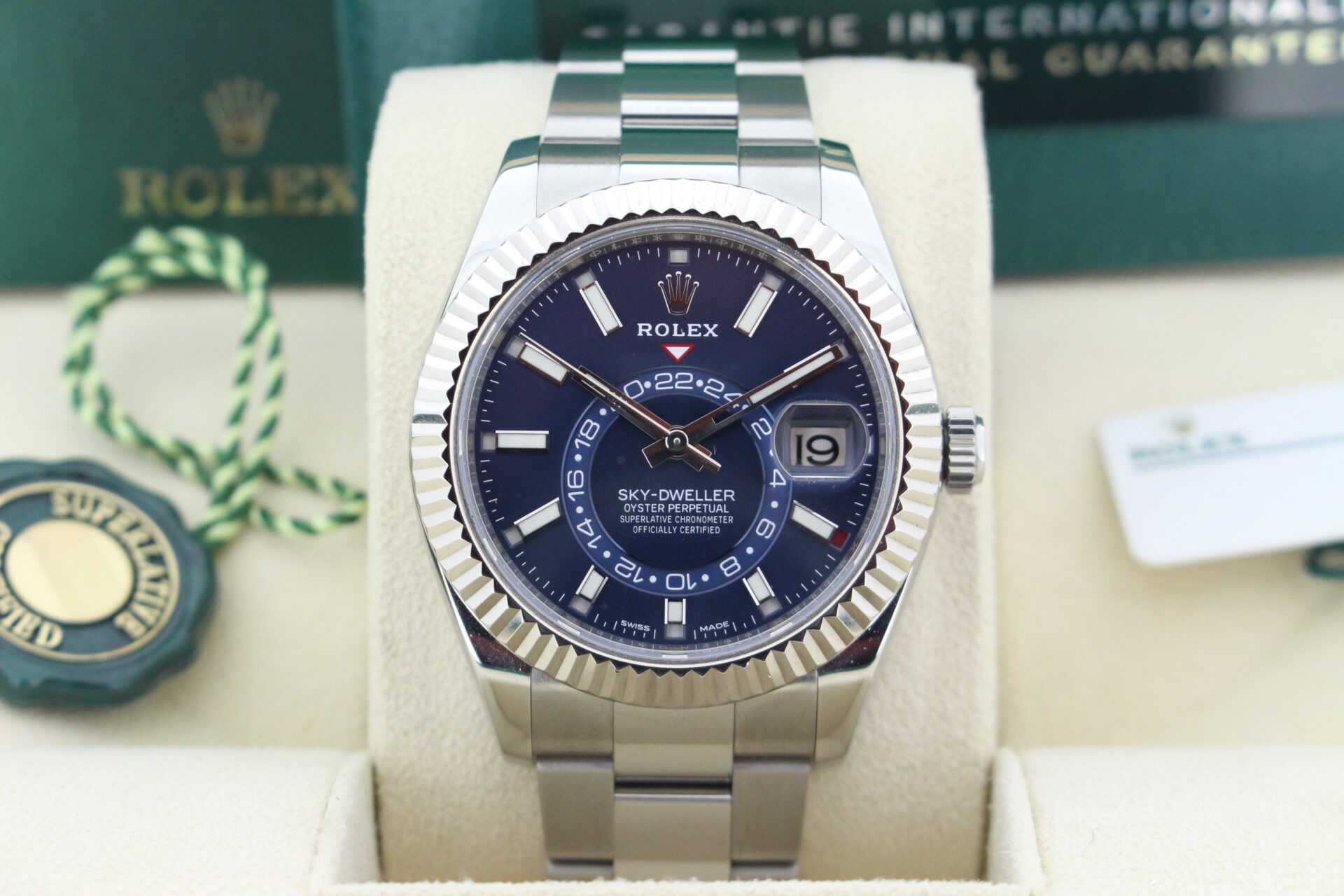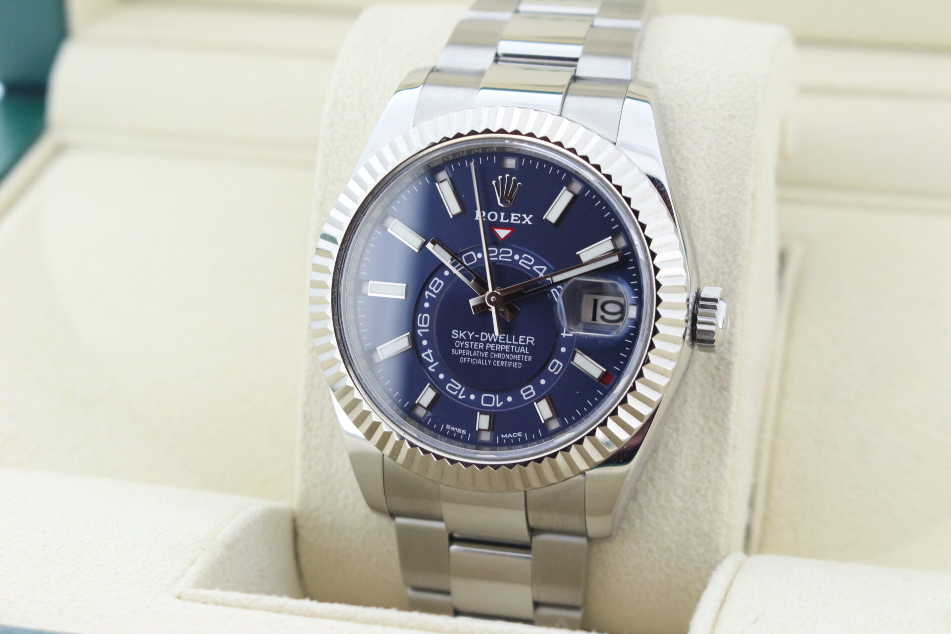Many collectors consider the blue dial sky-dweller to be Rolex’s most attractive looking watch, we tend to agree!