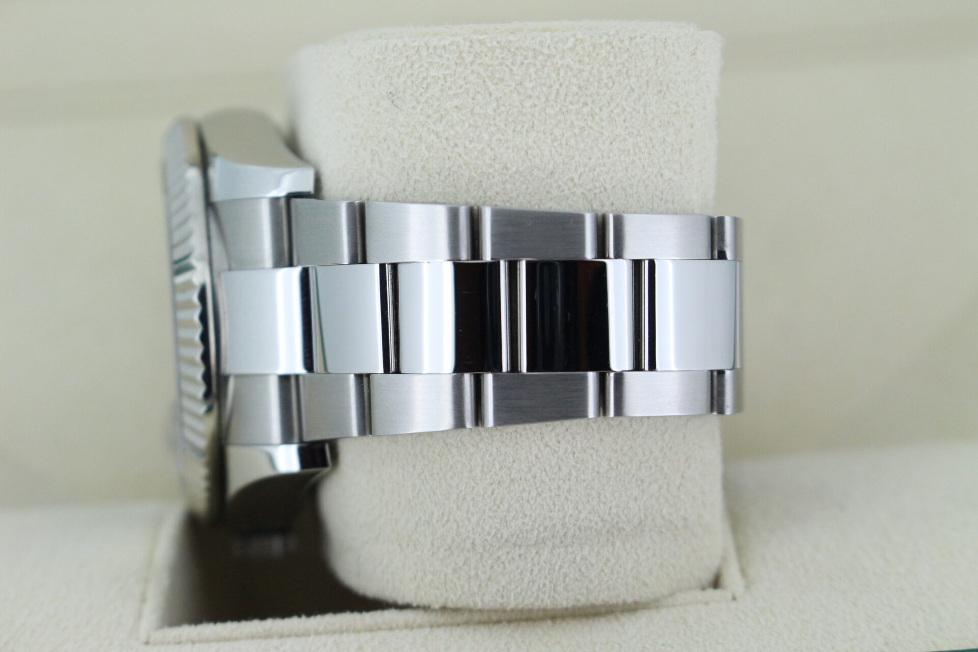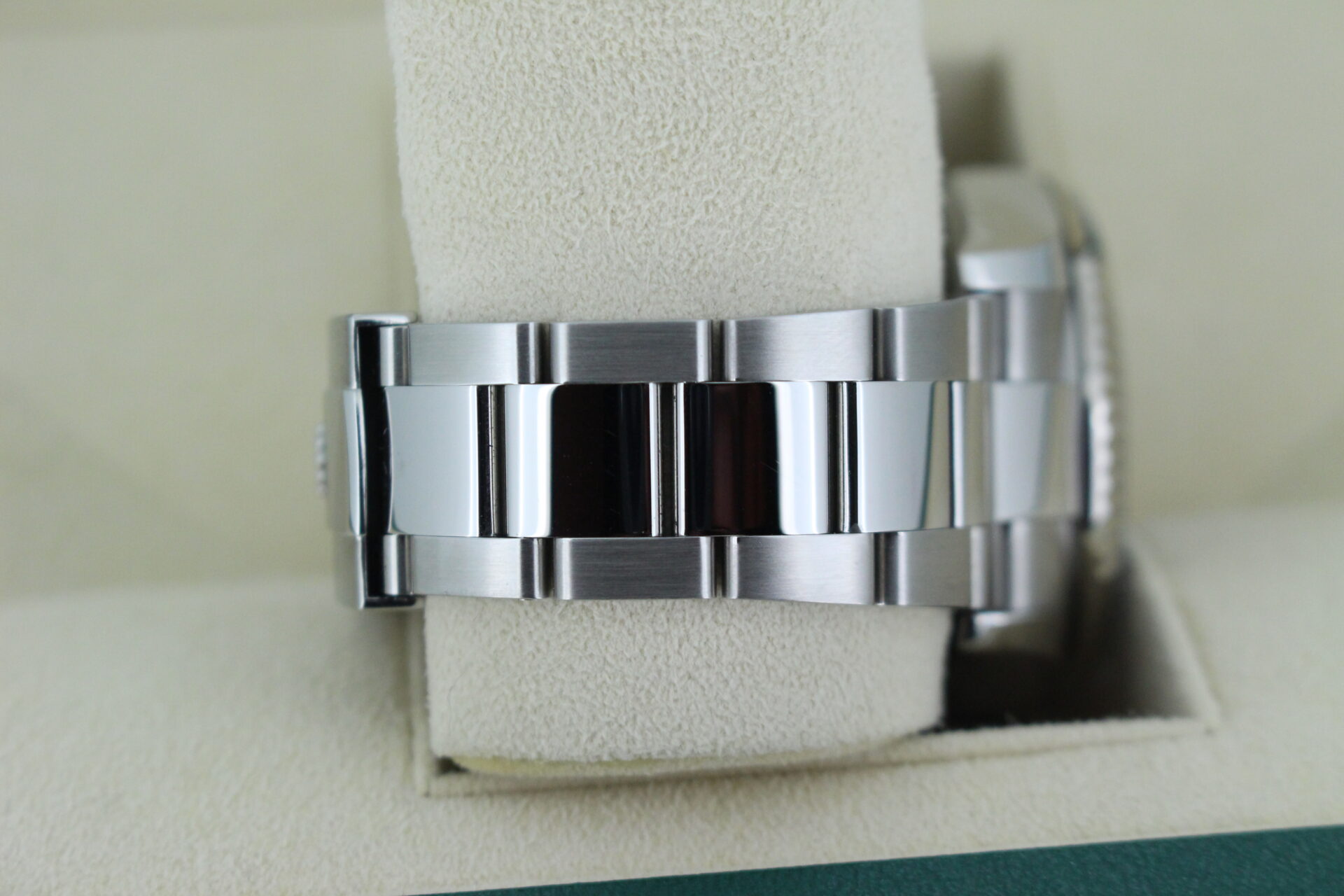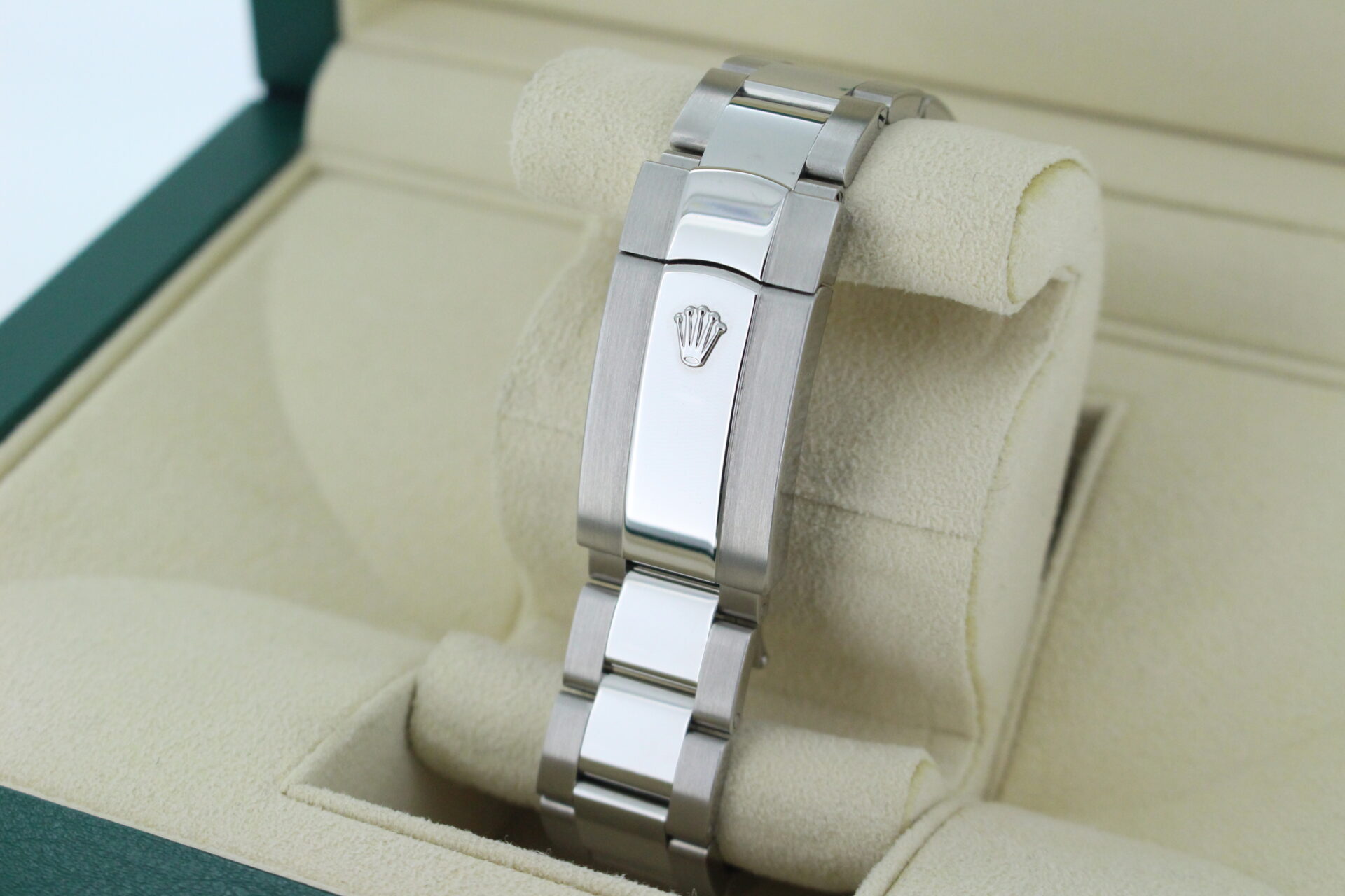 This particular watch comes as a full set from new including both inner and outer boxes, outer sleeve, both swing tags, booklets and new style Rolex warranty card stamped September 2020