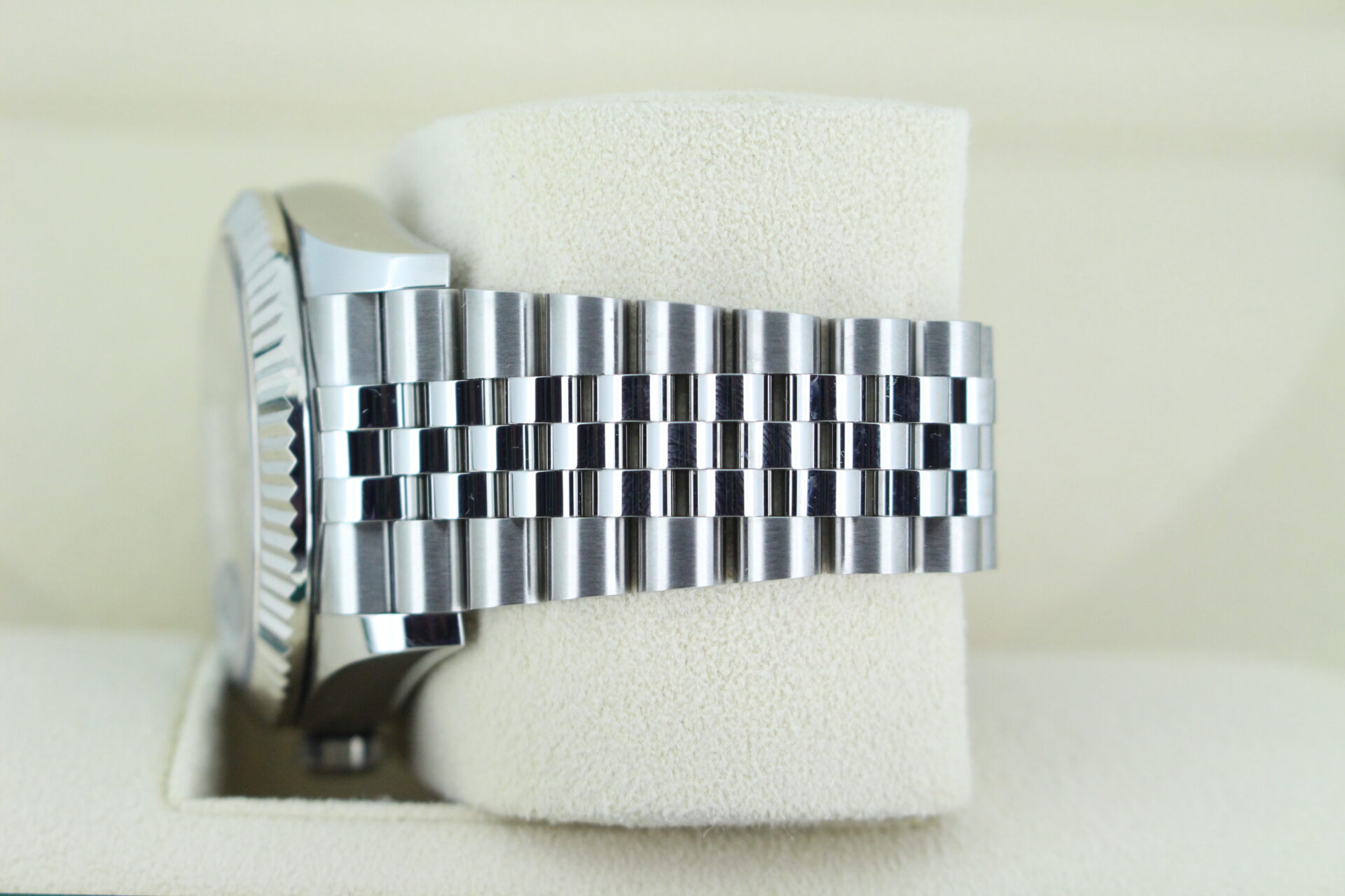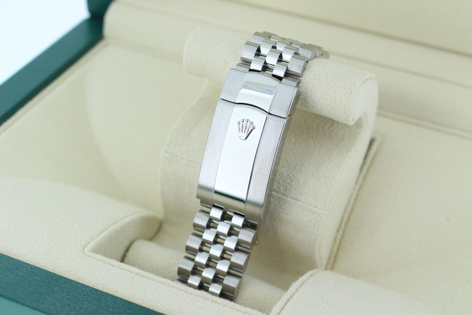This particular watch comes as a full set from new including both inner and outer boxes, outer sleeve, both swing tags, booklets, original UK purchase receipt and Rolex warranty card stamped August 2023.