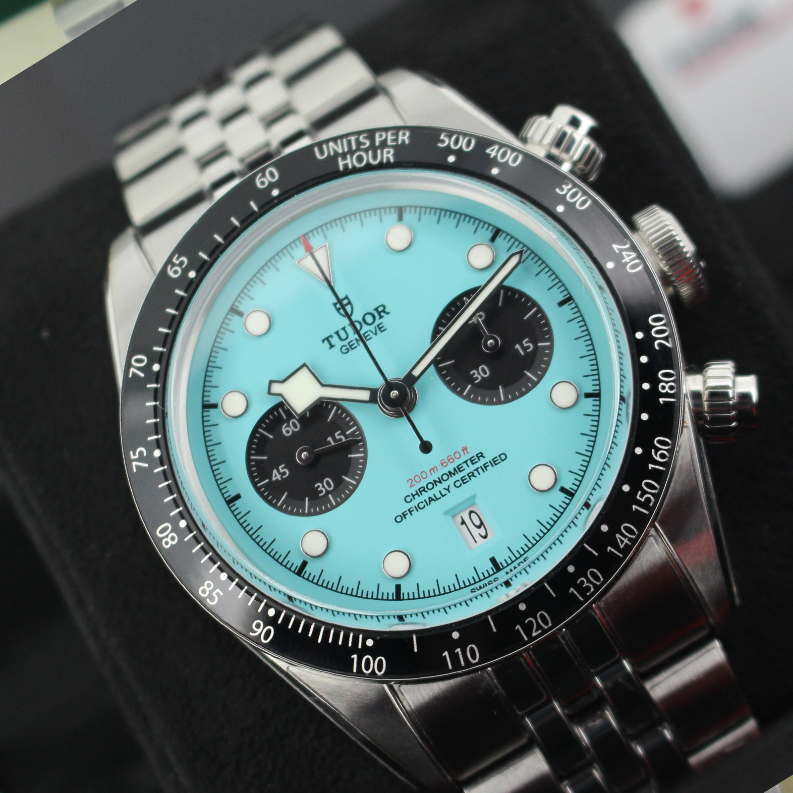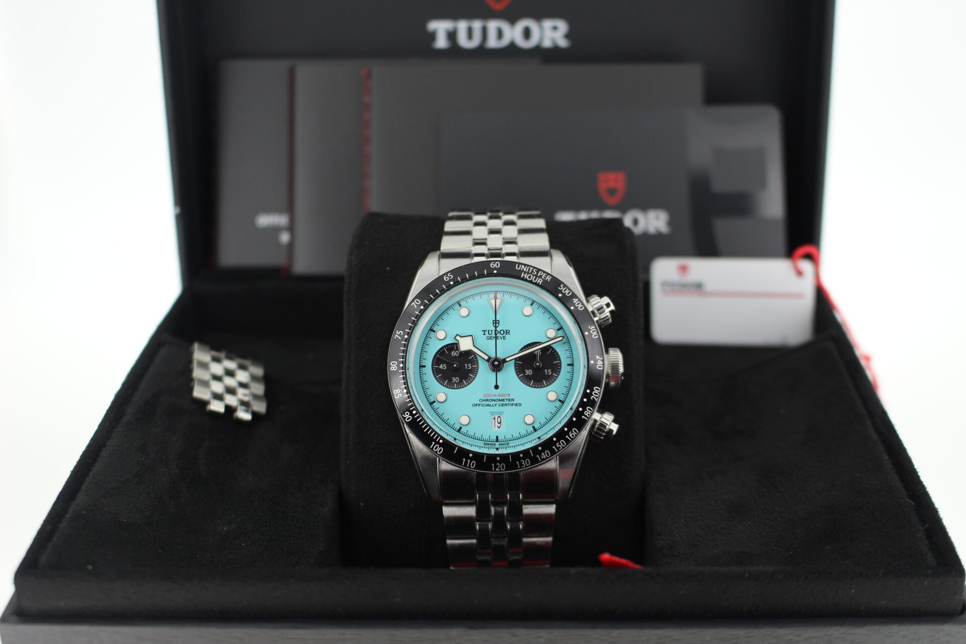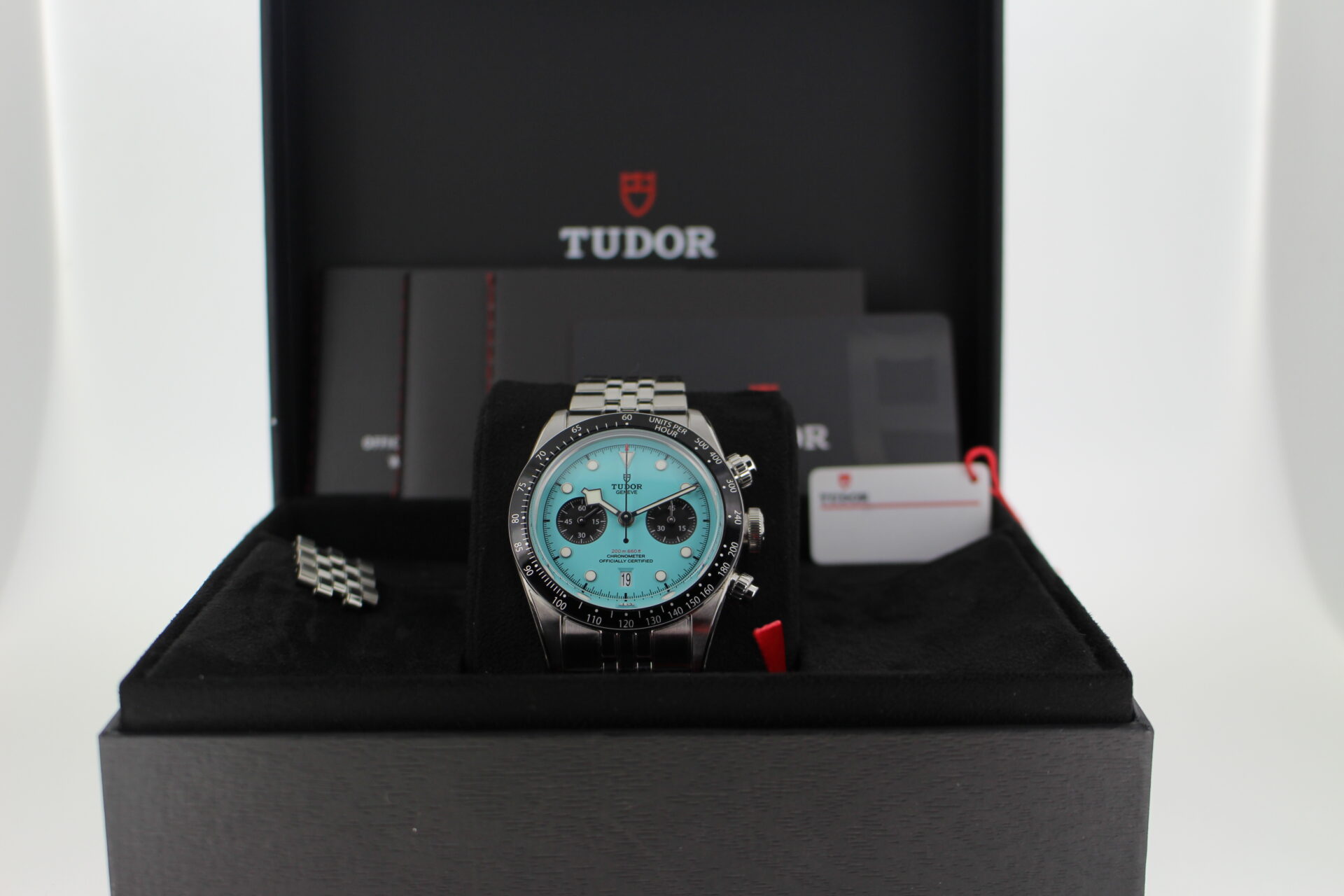 We are pleased to offer this immaculate Tudor Black Bay Chrono “Flamingo”.